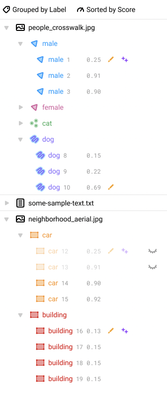 The Outliner is a replacement for the existing interface with a multiple-panel approach. This feature improves the user experience to fit more data in these two columns (Outliner and Details) and provides more options when working with regions. For example, Image segmentation is the only type of labeling that supports custom controls on the details panel.