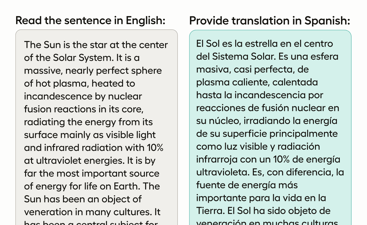 Use the TextArea control tag to provide an editable, required text box to provide a translation of the text, and include a Submit button for annotators: