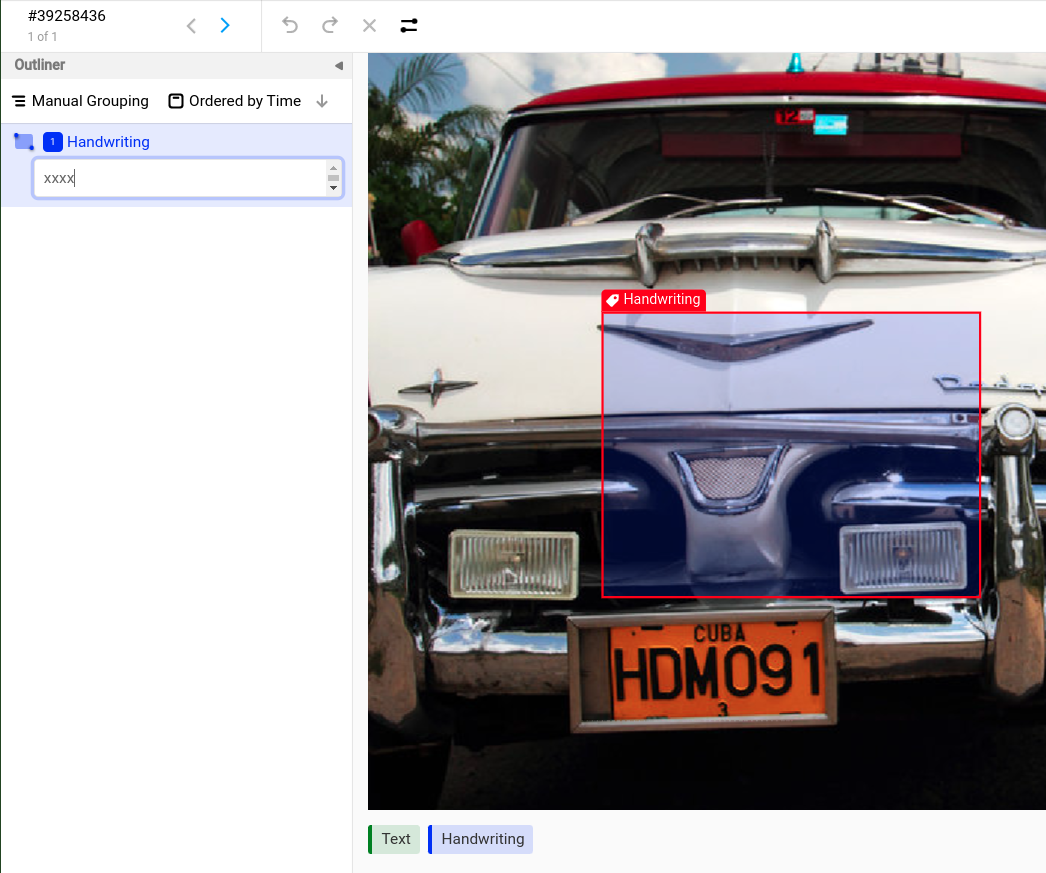 1. Select a label (e.g. “Handwriting”), create a new bounding box and select it.